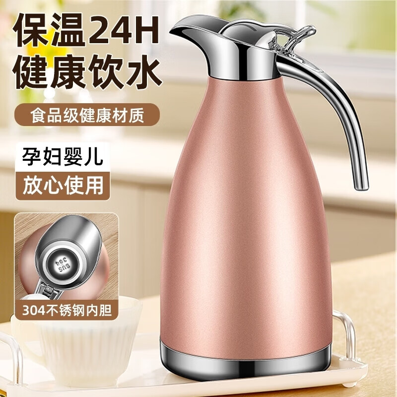 DEATKN德国高端不锈钢真空保温水壶宿舍家用厨房鸭嘴暖壶大容量热水 钢本色-2L[304内胆长效保温24小
