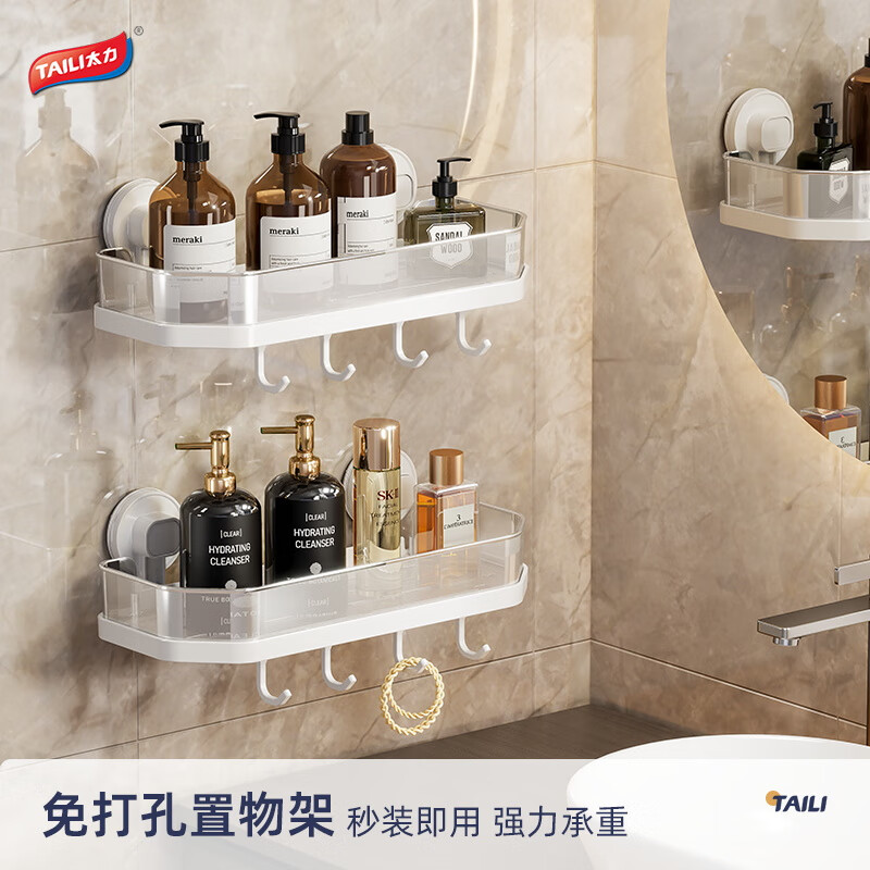 太力吸盘浴室卫生间墙上置物架免打孔墙上壁挂厕所收纳盒 墙上置物架