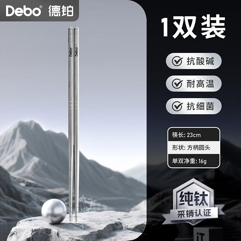 Debo德铂100%纯钛筷子家用高档分餐筷抗菌防霉磨砂防滑一人一筷专用 100%纯钛筷子1双