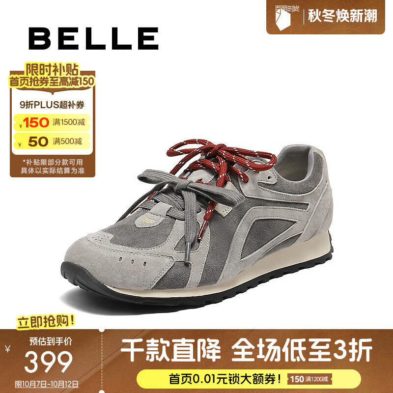 百丽(Belle)复古时尚阿甘鞋女2025秋新拼接面薄底运动休闲鞋B2811CM5 灰色 37 (235mm)