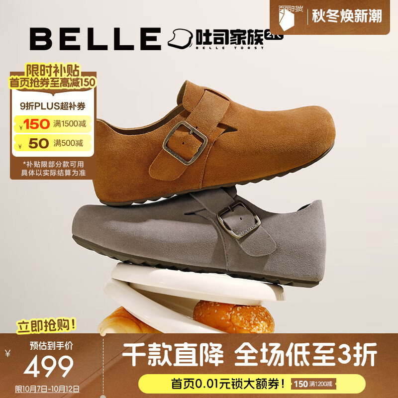 百丽(Belle)张凌赫同款全麦吐司鞋男2025新勃肯鞋厚底休闲鞋加绒A2195CM5预售 灰色-单里 43