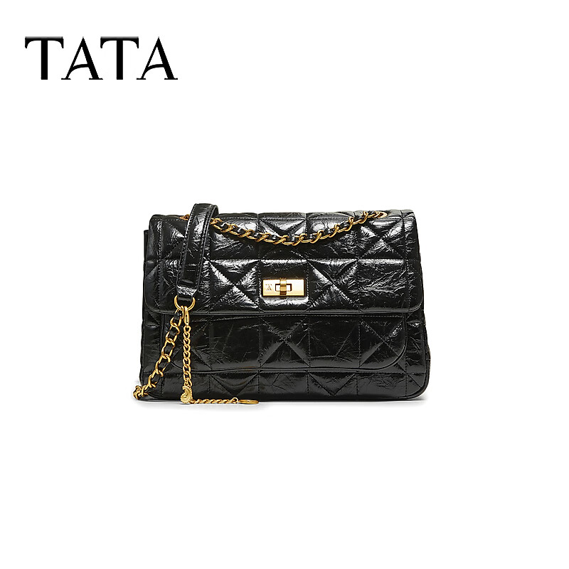 他她(TATA)女包2025冬季新款通勤轻奢小方包单肩百搭斜挎包X3514DX5 黑色 F