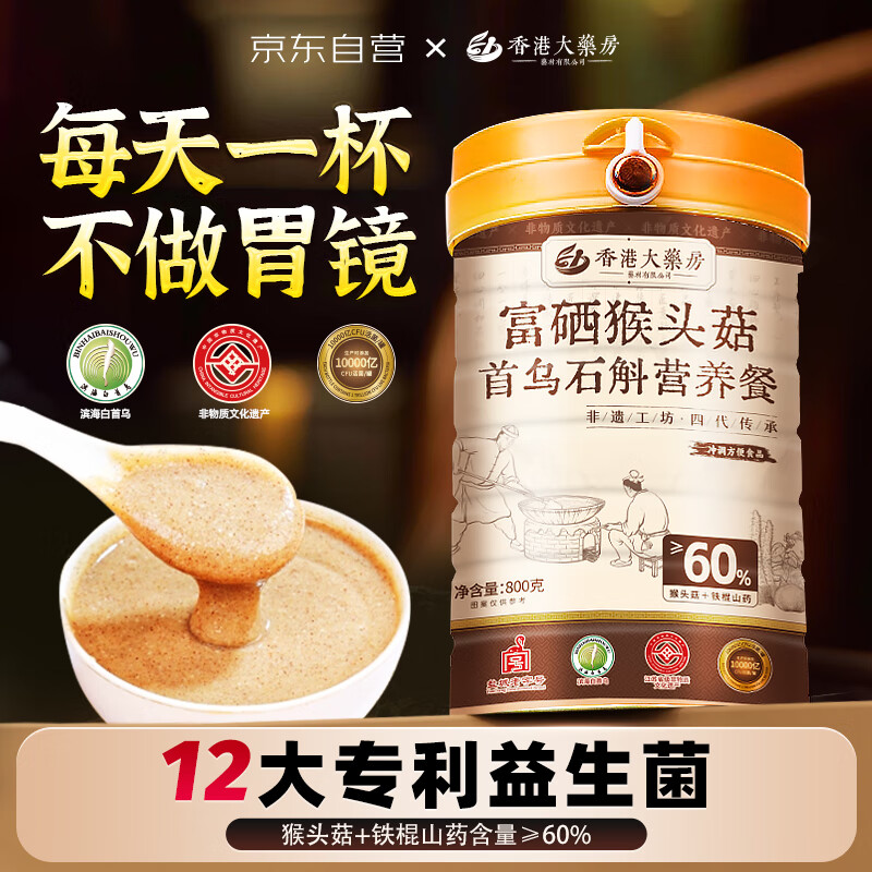 信盛堂香港大药房富硒猴头菇首乌石斛营养餐800g非遗营养早餐米稀糊代餐