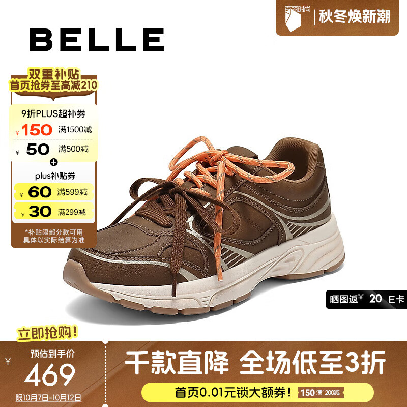 百丽(Belle)复古百搭老爹鞋女2025秋新商场同款厚底增高休闲鞋E4M1DCM5 棕色 38