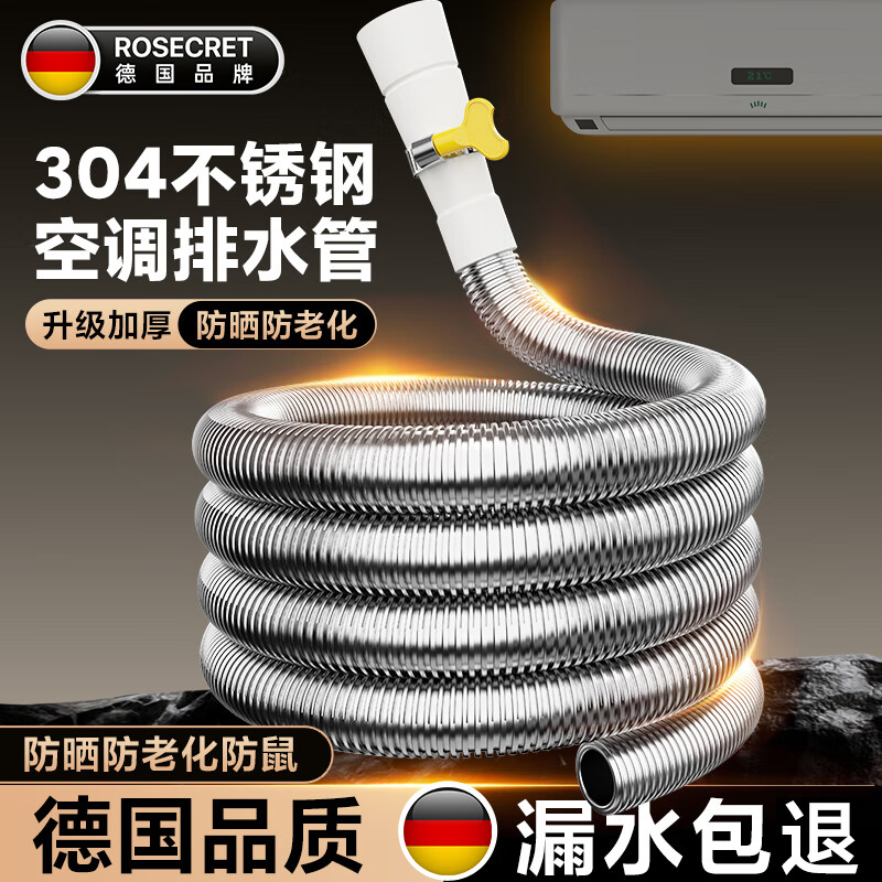 Rosecret【德国】304不锈钢空调排水管延长管抗老化通用冷凝滴出水管家用 空调排水管1米【防晒抗冻不老化】 多品牌空调通用安装