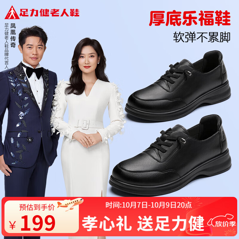 足力健老人鞋中老年女鞋休闲舒适软底乐福鞋百搭送礼 黑色 38