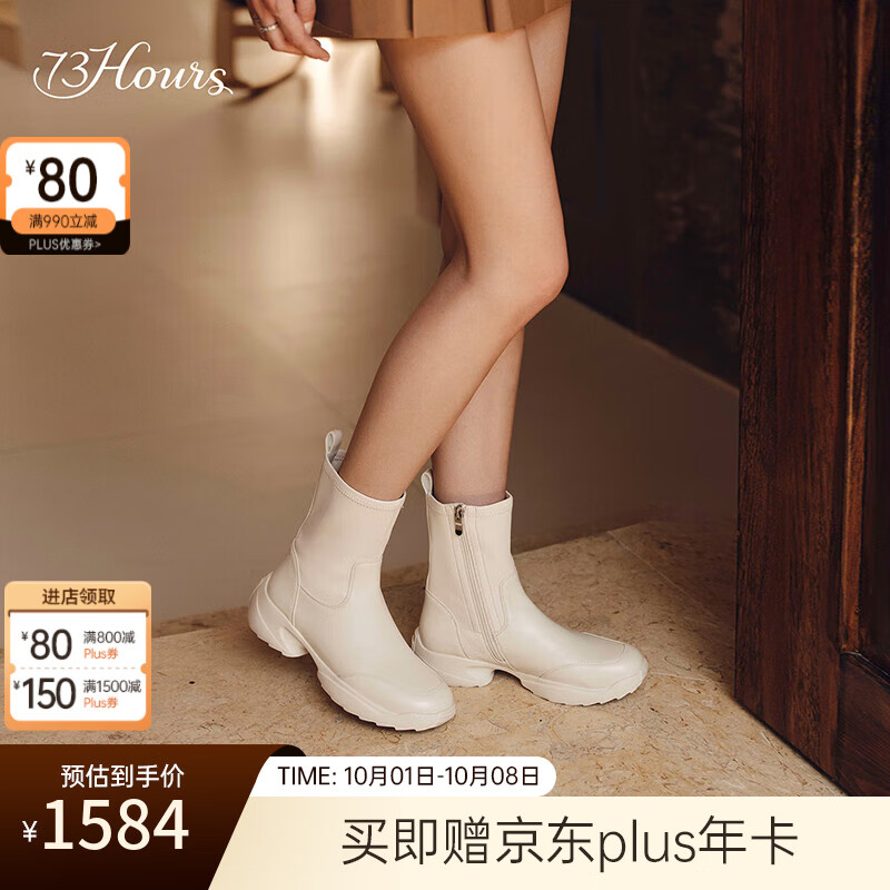 73Hours女鞋马斯卡彭2025冬季新款弹力瘦瘦靴女显瘦时装靴子短靴 奶白色 39