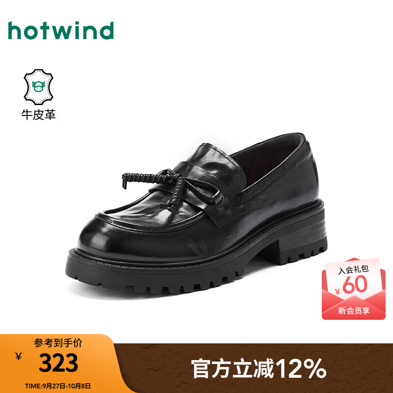 热风【商场同款】厚底乐福鞋女鞋2025年秋新款粗跟休闲单鞋小皮鞋通勤 01黑色 牛头层皮革 37