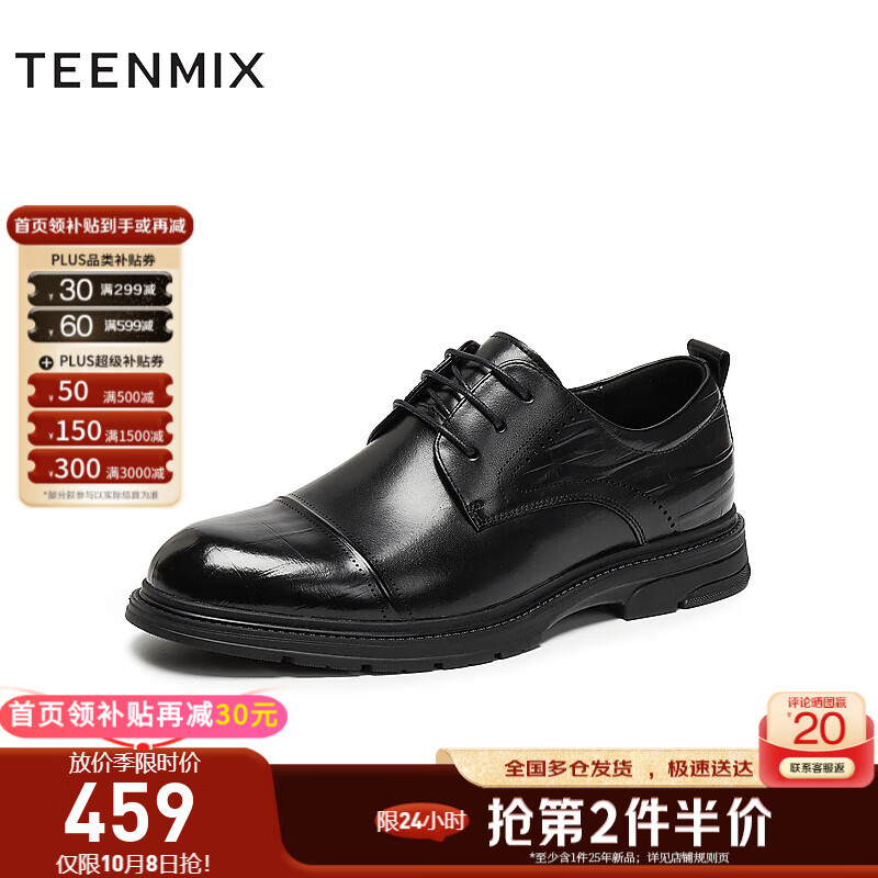 天美意皮鞋商场同款纯色系带商务通勤男鞋正装皮鞋2025秋新款3WS01CM5 黑色 41