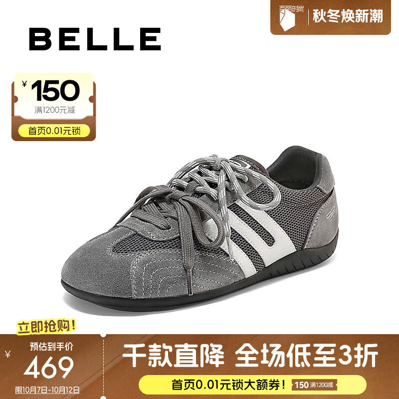 百丽(Belle)跑道休闲运动赛车鞋女2025秋新复古撞色内增高德训鞋B2816CM5 灰色 38 (240mm)