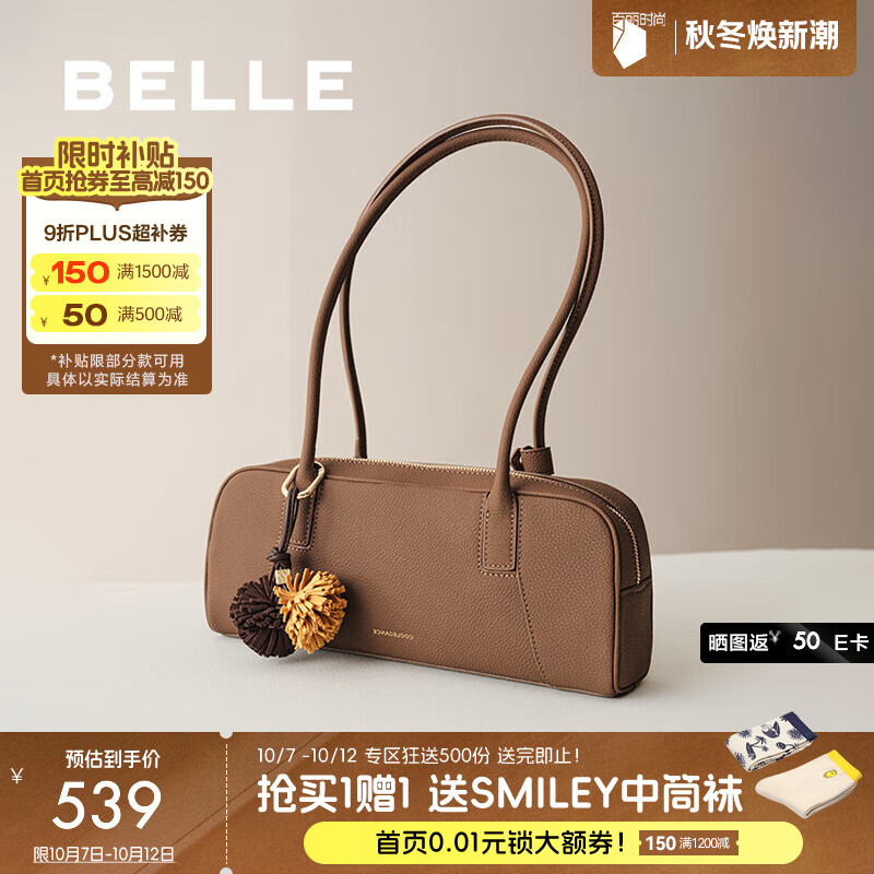 百丽包女25秋商场同款质感通勤miu系单肩波士顿包8547ACX5 啡色 F