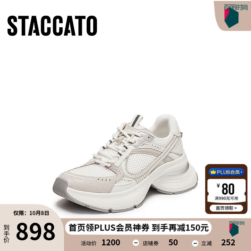思加图2025秋季新款极光蝴蝶老爹鞋厚底增高运动休闲鞋女ECE94CM5 百搭银白 37