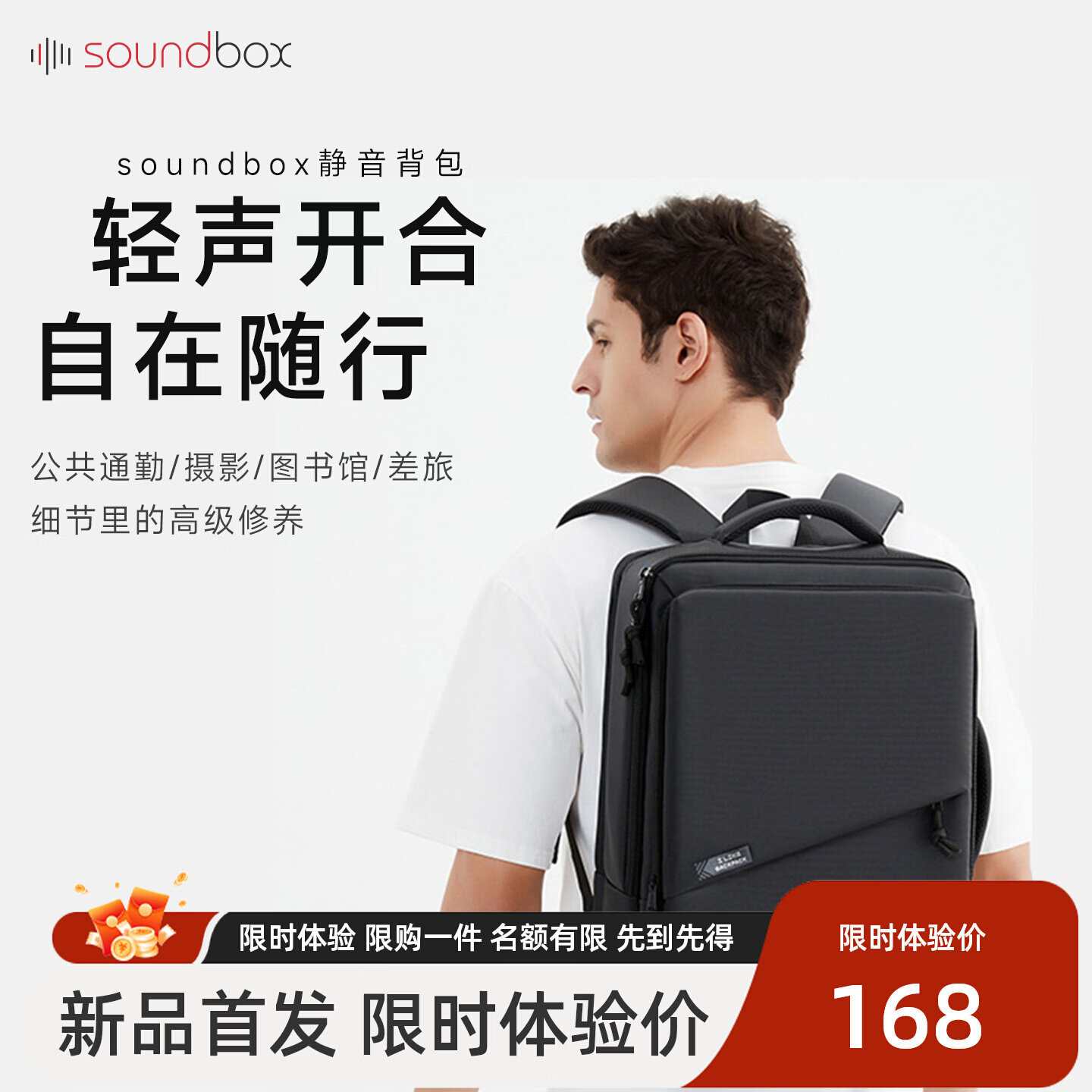 soundbox声博士静音背包双肩便携商务通勤分区电脑包多用途旅行包大容量 黑色