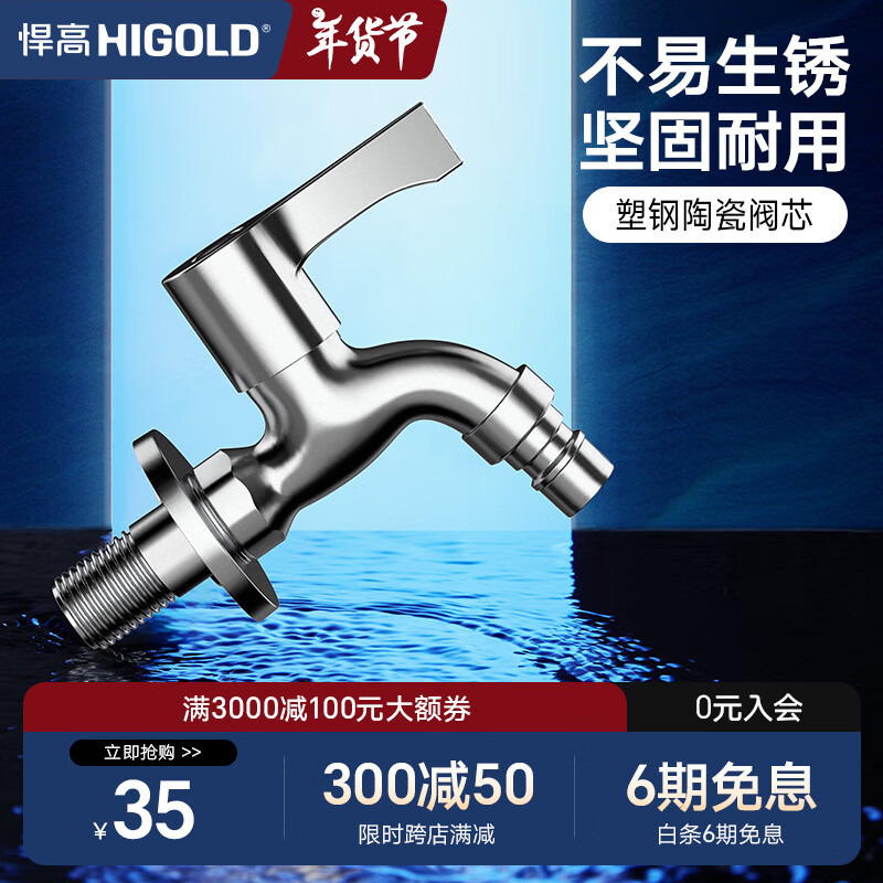 悍高(HIGOLD)阳台户外室内花园龙头 洗衣机龙头铜主体水龙头 通用4分水嘴头