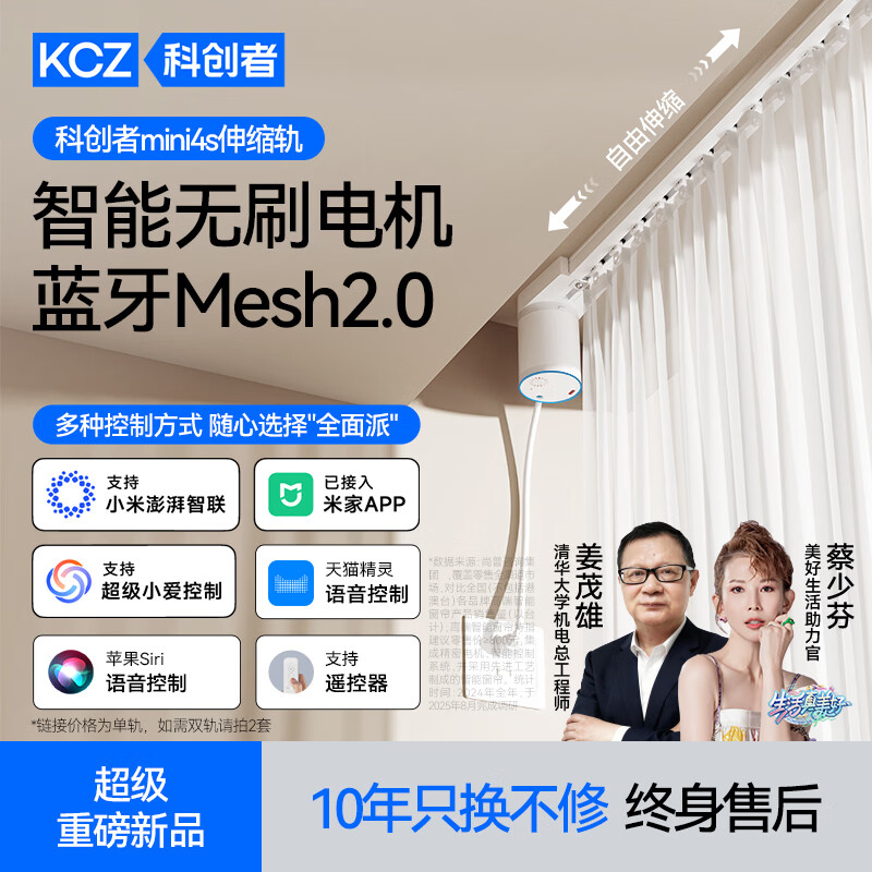 科创者4s电动窗帘伸缩轨道智能全自动无刷小电机已接入米家APP 插电款 【指导安装】1.76-3米内插电款伸缩轨