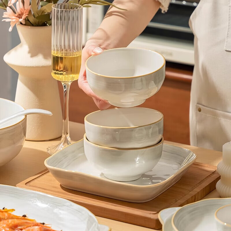 精缔陶瓷JINGDI级感碗碟套装家用2025新款高颜值餐具简约陶瓷碗盘乔迁碗具碗筷 筷子架