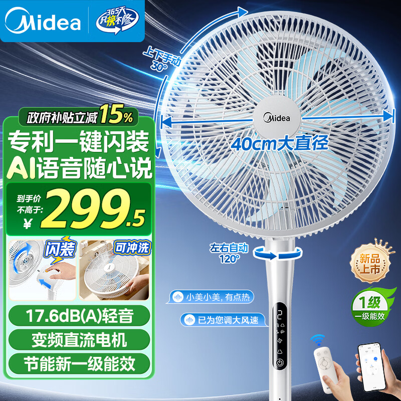 美的(Midea)【一键闪装】电风扇 落地扇立式家用节能一级能效卧室客厅大风力语音变频直流小型风扇 SDJ35MBH