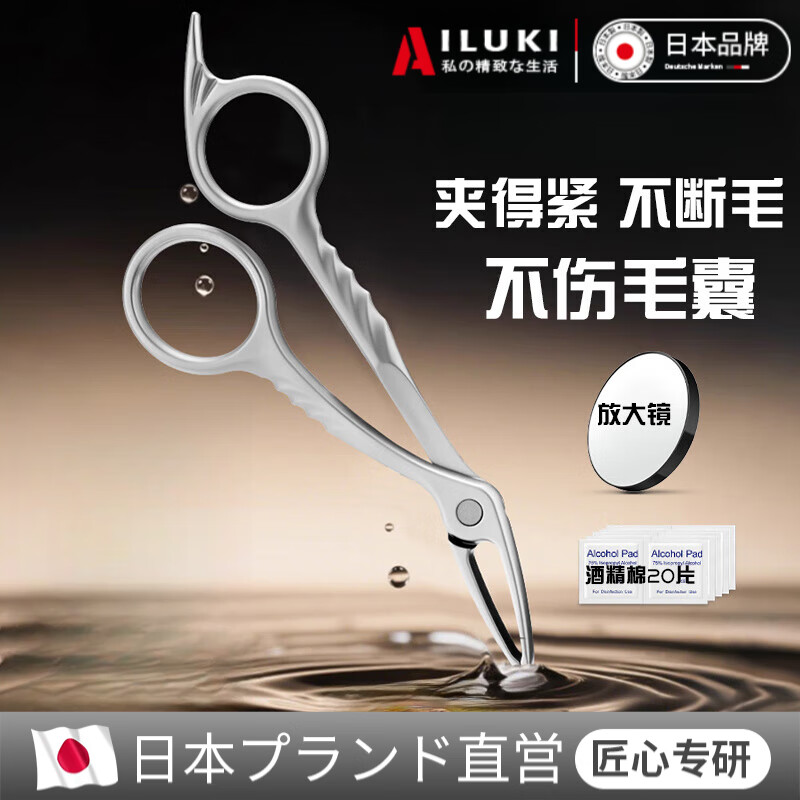 AILUKI日本男士拔胡子胡子夹子神器眉夹镊子拔毛眉毛夹高精密钳子眉毛钳 【胡子夹】_无感拔毛_不断毛