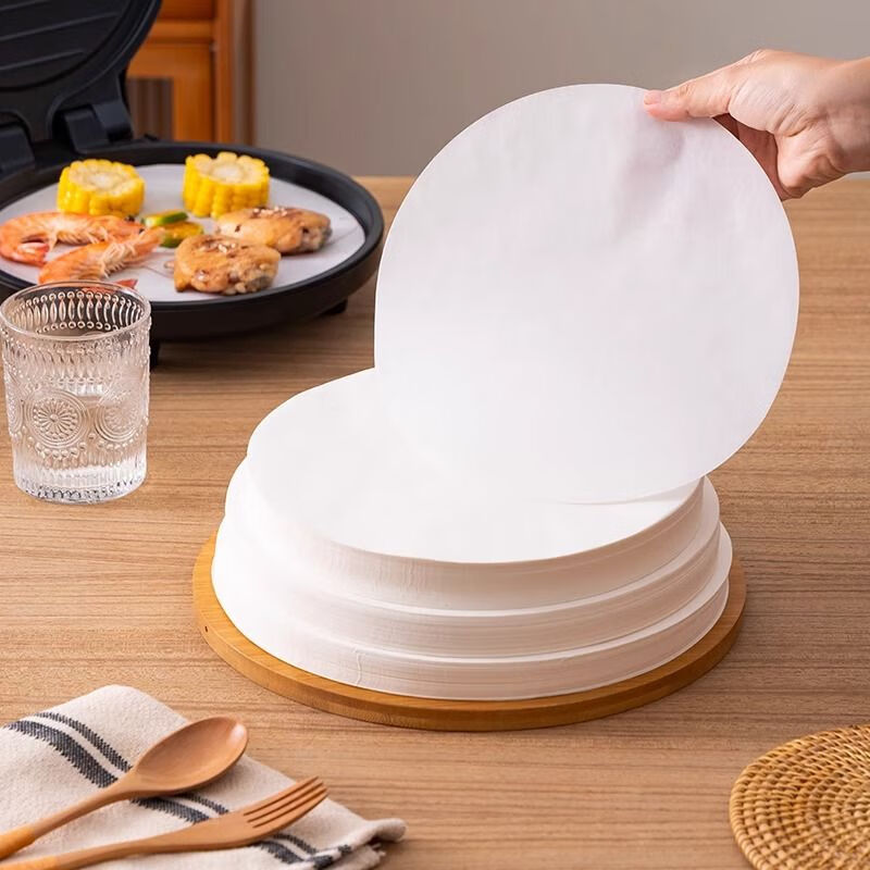 DEATKN家用空气炸锅烤盘烘焙烤箱油纸食品级不粘圆形加厚烧烤吸油纸 42g加厚不沾锅【50张】 直径16cm