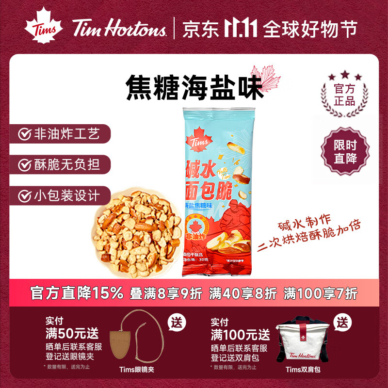 Tim HortonsTims咖啡伴侣焦糖海盐味面包干碱水面包脆丁饼干 30g
