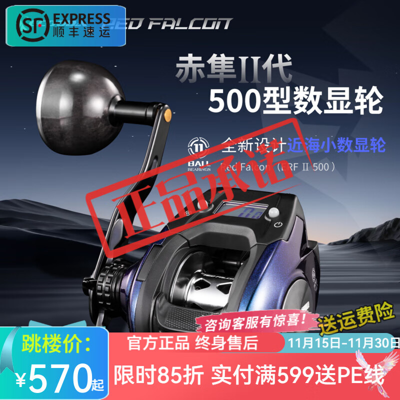 伊酷达(ECOODA)新款赤隼500数显水滴轮 鼓轮海钓轮 近海船钓轮电子计数轮防海水 赤隼ERF500(速比7.6/轴承数10+1/钓力8kg) 右手轮
