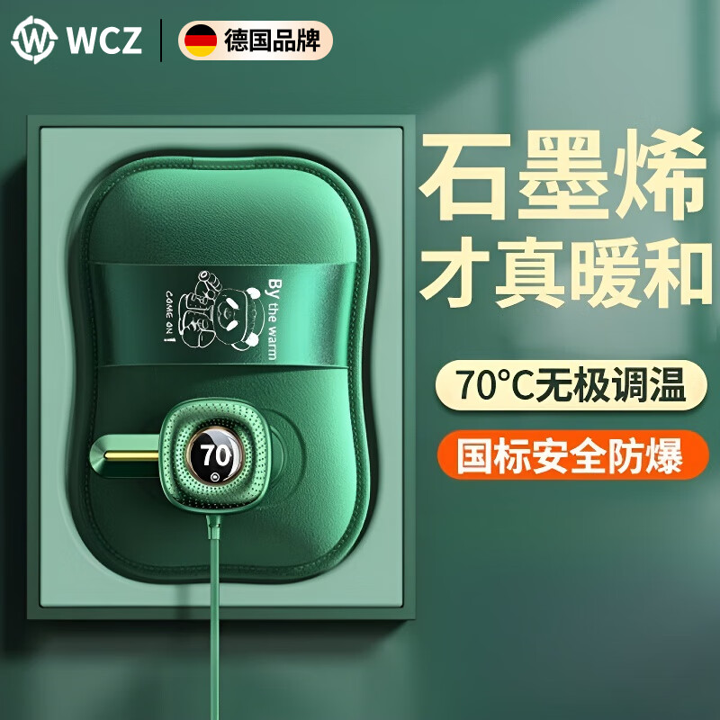 WCZ德国2025新款热水袋充电款暖手宝暖宝宝防爆正品电热宝暖水袋电 仙踪绿Max加长款 【持续保暖12H防爆无异味】