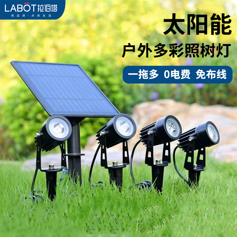 拉伯塔太阳能射灯户外超亮防水照树灯家用室外景观庭院花园氛围草坪灯 1拖1【3米线】太阳能照树灯 【白光】