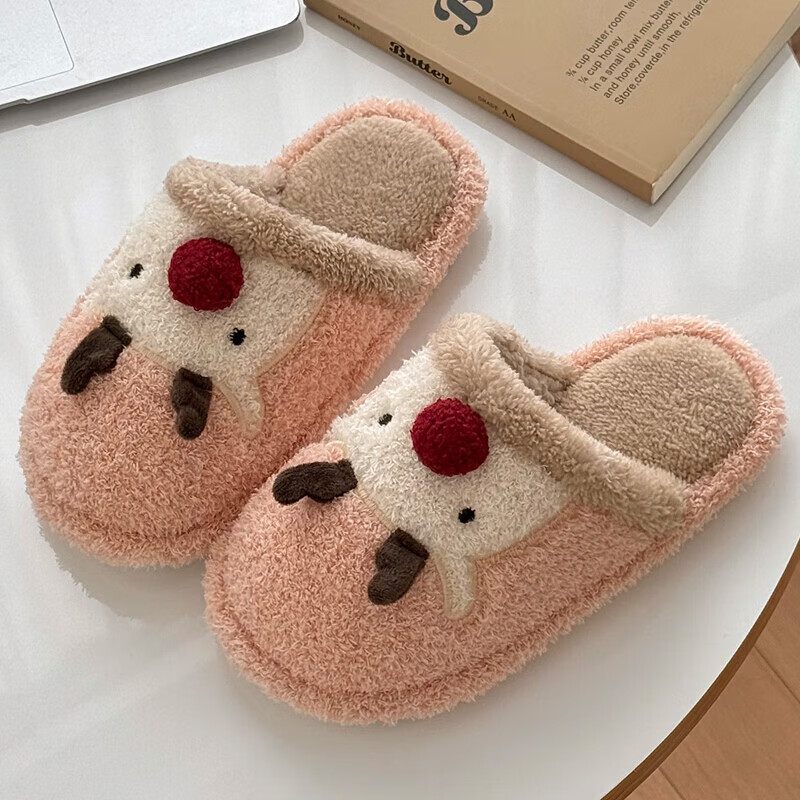 FZT棉拖鞋女士2025新款冬季圣诞麋鹿室内居家用防滑毛绒保暖棉拖女款 粉色【卡通麋鹿】 36-37 正码【内长225mm】