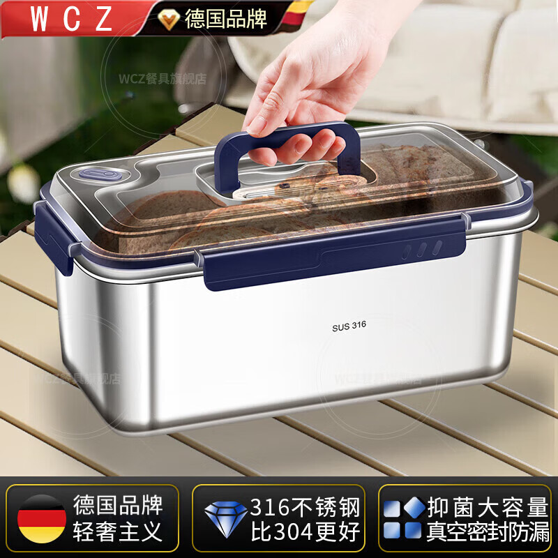 WCZ德国316不锈钢保鲜盒食品级大容量野餐水果便当饭盒防串味带盖密 【密封保鲜】贴心设计款保鲜盒 2400ml