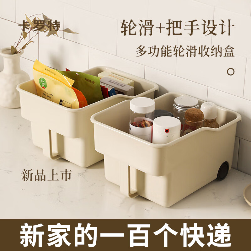 木格格厨房收纳盒调料品置物架锅盖架锅具橱柜收纳盒零食储物收纳架子 加厚/滑轮/把手款【中号1个装】