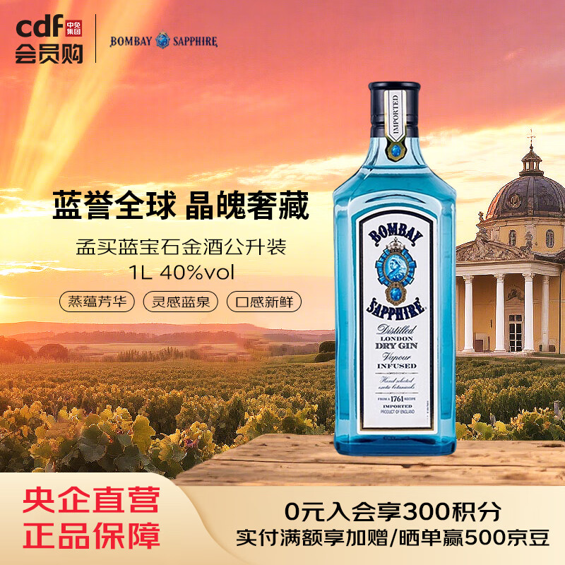 孟买蓝宝石金酒公升装 1L 40%vol 1L 40%vol