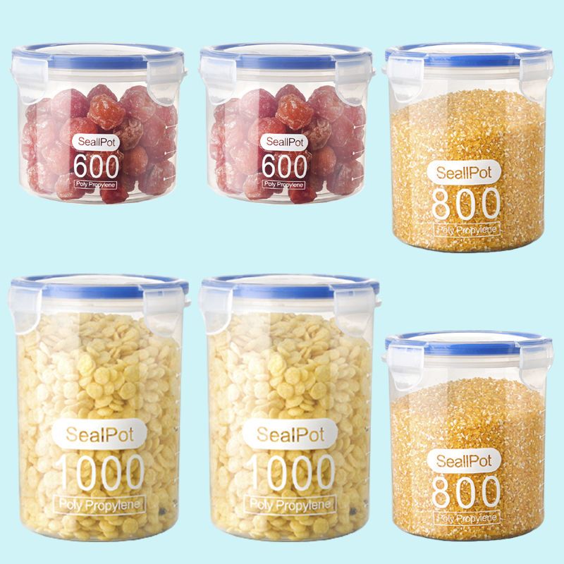 AILUKI日本户璃密封罐塑料食品罐储存储物罐收罐五谷杂粮厨房零食冰箱收 钜惠6件套小2+中2+大2