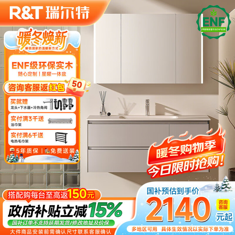 瑞尔特(R&T)2025新款浴室柜组合星曜一体盆ENF级环保卫生间洗脸洗漱台盆柜 ENF级环保多层实木-Y1052 110cm