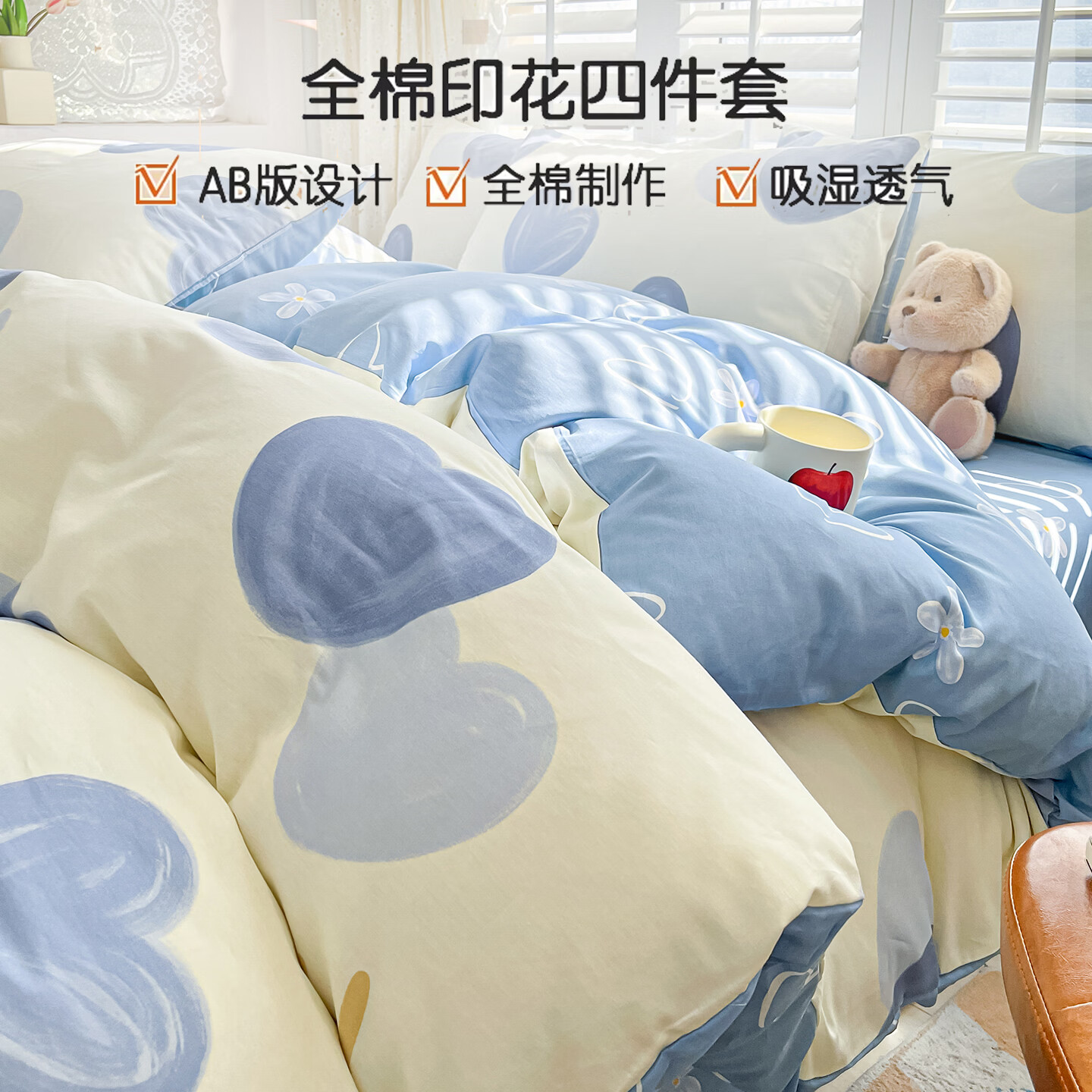 南极人(Nanjiren)纯棉床上四件套床上用品全棉床单被罩被套家用床笠宿舍单人三件套 怦然心动 【纯棉面料 舒适裸睡】 床单款 180*220cm单被套