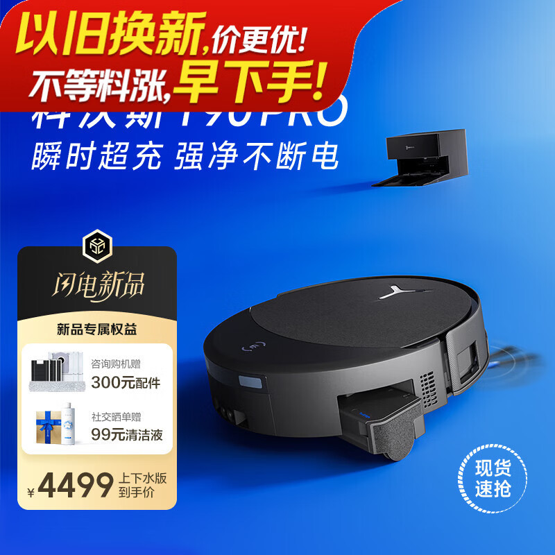 科沃斯T90 PRO扫地机器人【重磅新品】扫拖洗烘一体自动清洗集尘热水洗抹布热风烘干滚筒活水洗地上下水