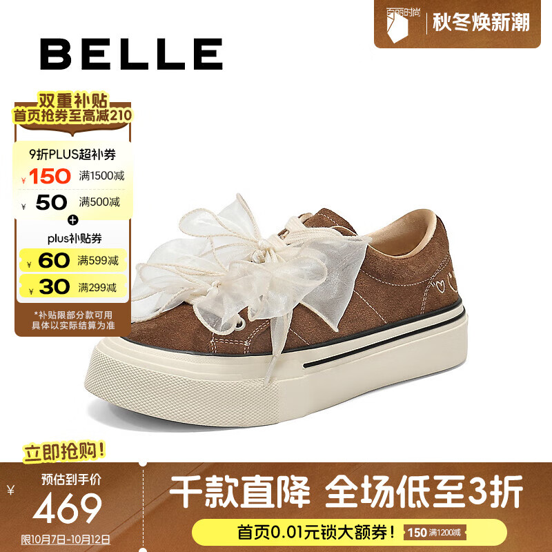 百丽(Belle)简约百搭休闲板鞋女2025秋新舒适中跟低帮休闲鞋B2871CM5 棕色 38