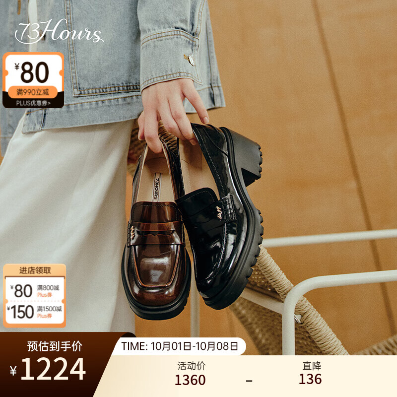 73Hours女鞋白鹿同款落叶音效2025秋季新款厚底高跟英伦风乐福鞋 黑色 【白鹿同款】 37