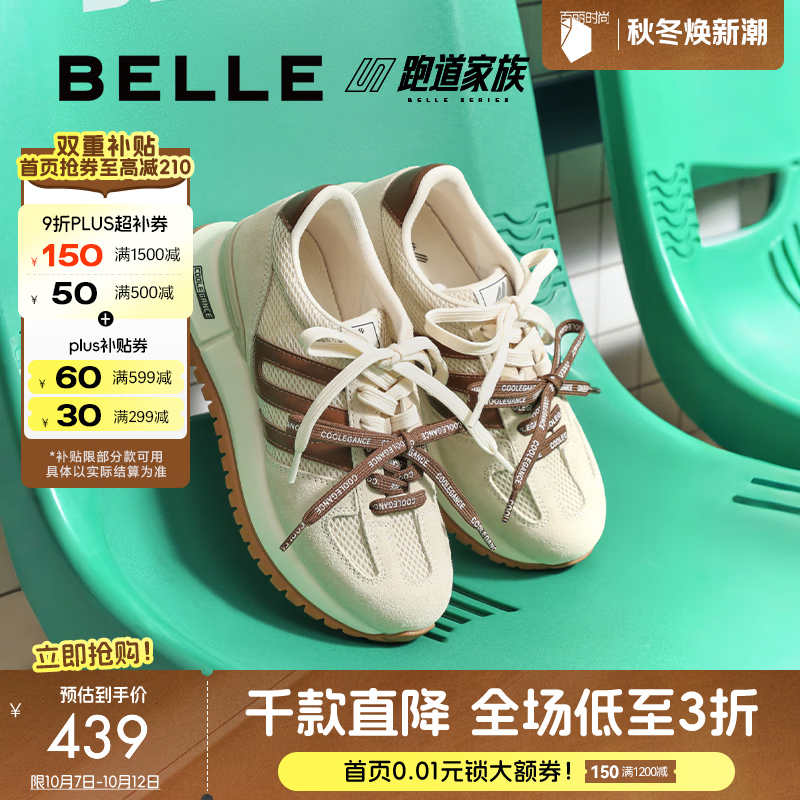百丽(Belle)透气网面阿甘鞋女2025秋新撞色厚底增高休闲鞋B2813CM5 米灰色 35 (225mm)