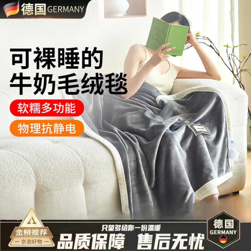 DEATKN德国毛毯午睡毯办公室高级盖被四季通用空调毯加厚床毯宿舍 【钛金灰】软糯亲肤不掉毛无静电 100x150cm【办公室午休 四季可用】