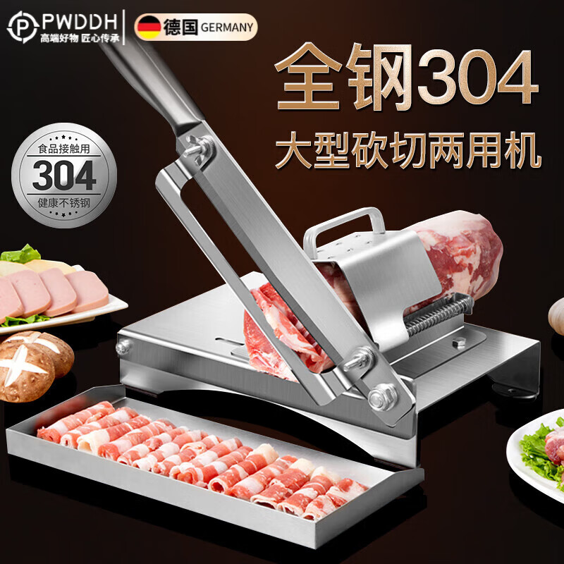 PWDDH德国肉卷切片机家用304不锈钢羊肉片肥牛肉卷切片机多功能切冻肉神器商用切骨机 特厚加大型304切片+砍骨机+接料盘【40冻肉袋】