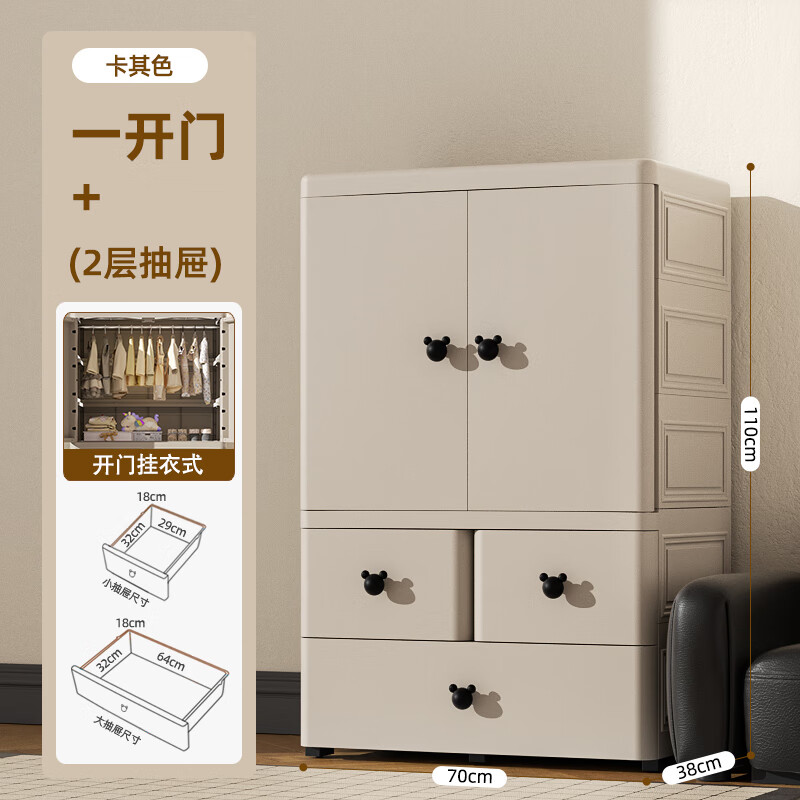 懒人空间【德邦】母婴喂养台抽屉收纳柜奶粉储物柜衣柜婴儿房五斗柜护理台 110cm高【喂养首选-卡其色】1衣柜+3抽