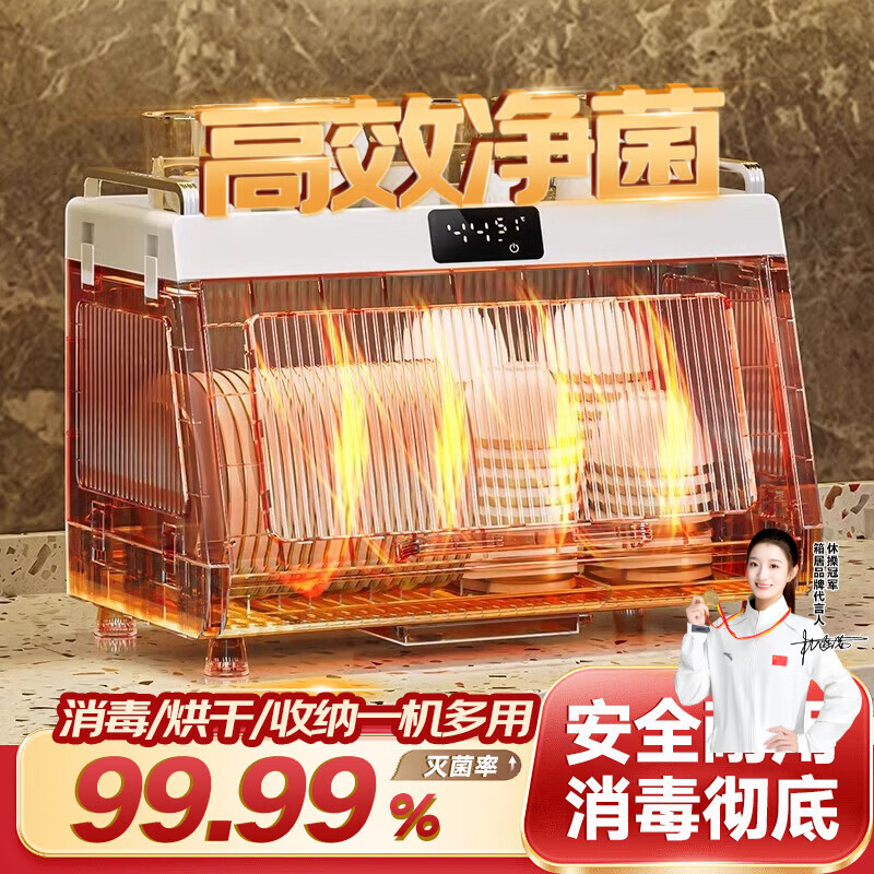 箱居碗筷柜台式餐具紫外线高温消毒烘干一体机碗筷柜消毒机沥水置物架 常规款【透明白】沥水+防尘