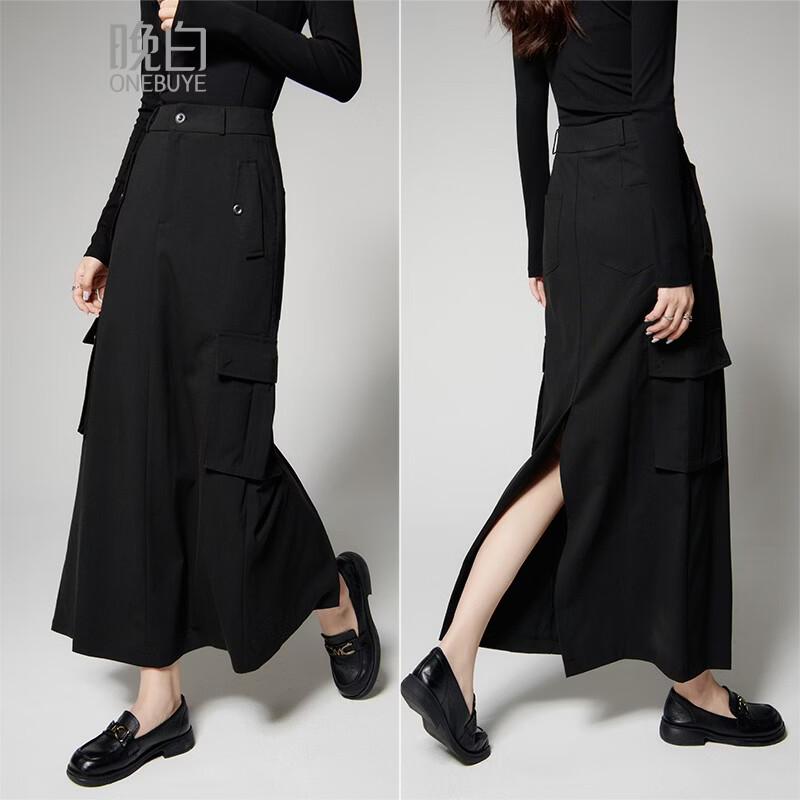 晚白【新品】2026年春款经典工装风半裙高腰显瘦日常通勤半身裙 黑色 S