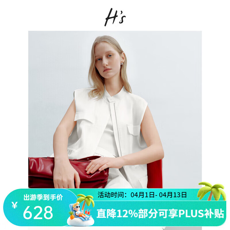 H's【莱赛尔】白色工装风马夹女26夏季新款高级感直筒宽松马甲背心 本白 L