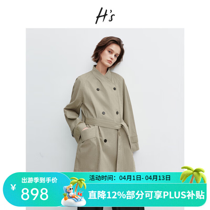 H's绿卡其系带风衣女26年春季新款高级设计感多穿领H型廓形短外套 绿卡其 M
