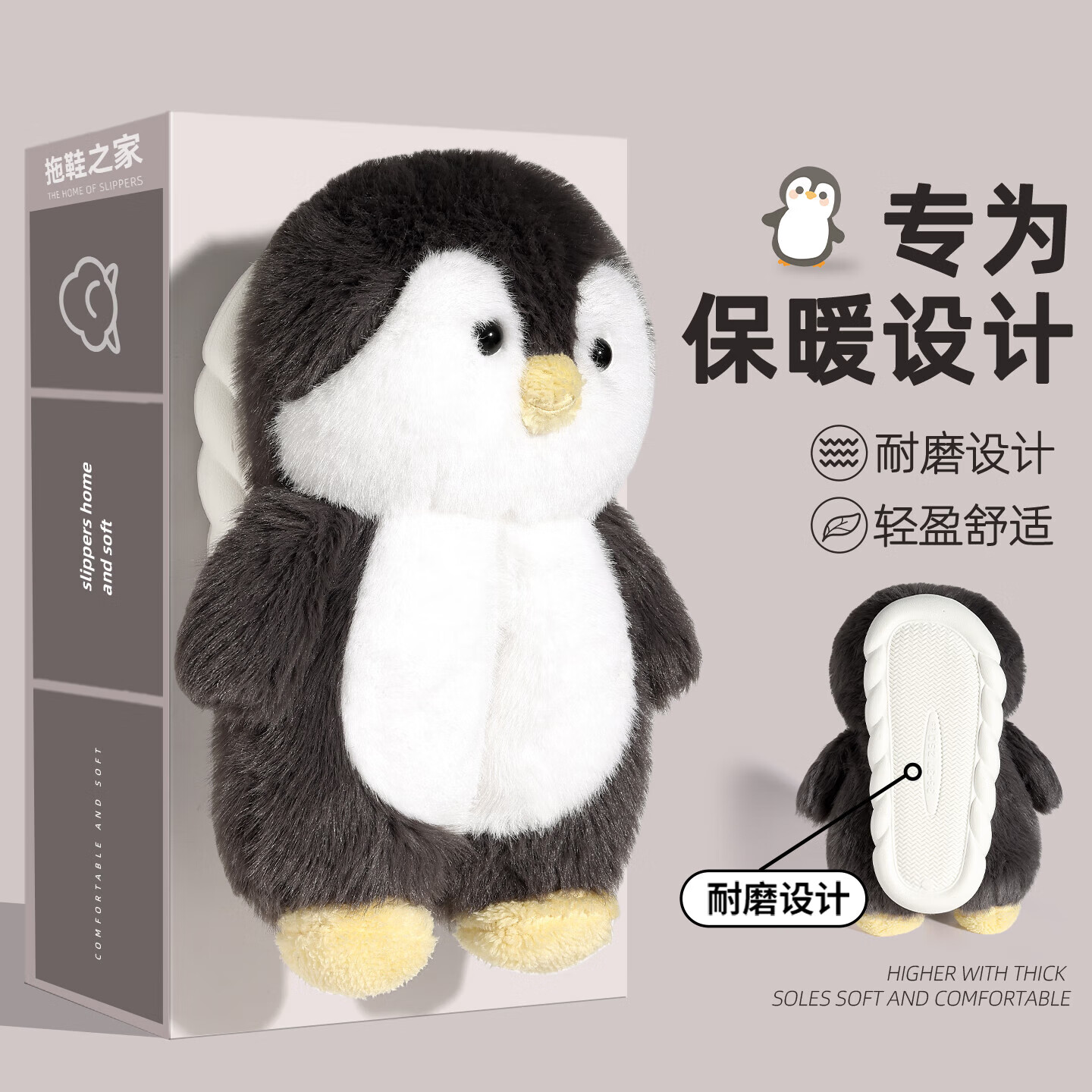 FZT企鹅棉拖鞋女2025秋冬室内居家厚底包跟毛绒耐磨防滑保暖棉拖鞋男 灰色 36-37 适合35-36