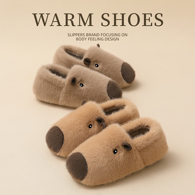FZT卡皮巴拉包跟棉拖鞋女士冬季新款室内家居软底毛绒保暖毛毛棉鞋男 浅咖 44-45 适合43-44【内长26.5】