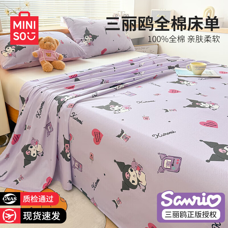 名创优品三丽鸥纯棉床单单件 全棉被单秋冬加厚单双人床单枕套三件套 爱心库洛米 120cm*230cm 单床单【适0.9床】