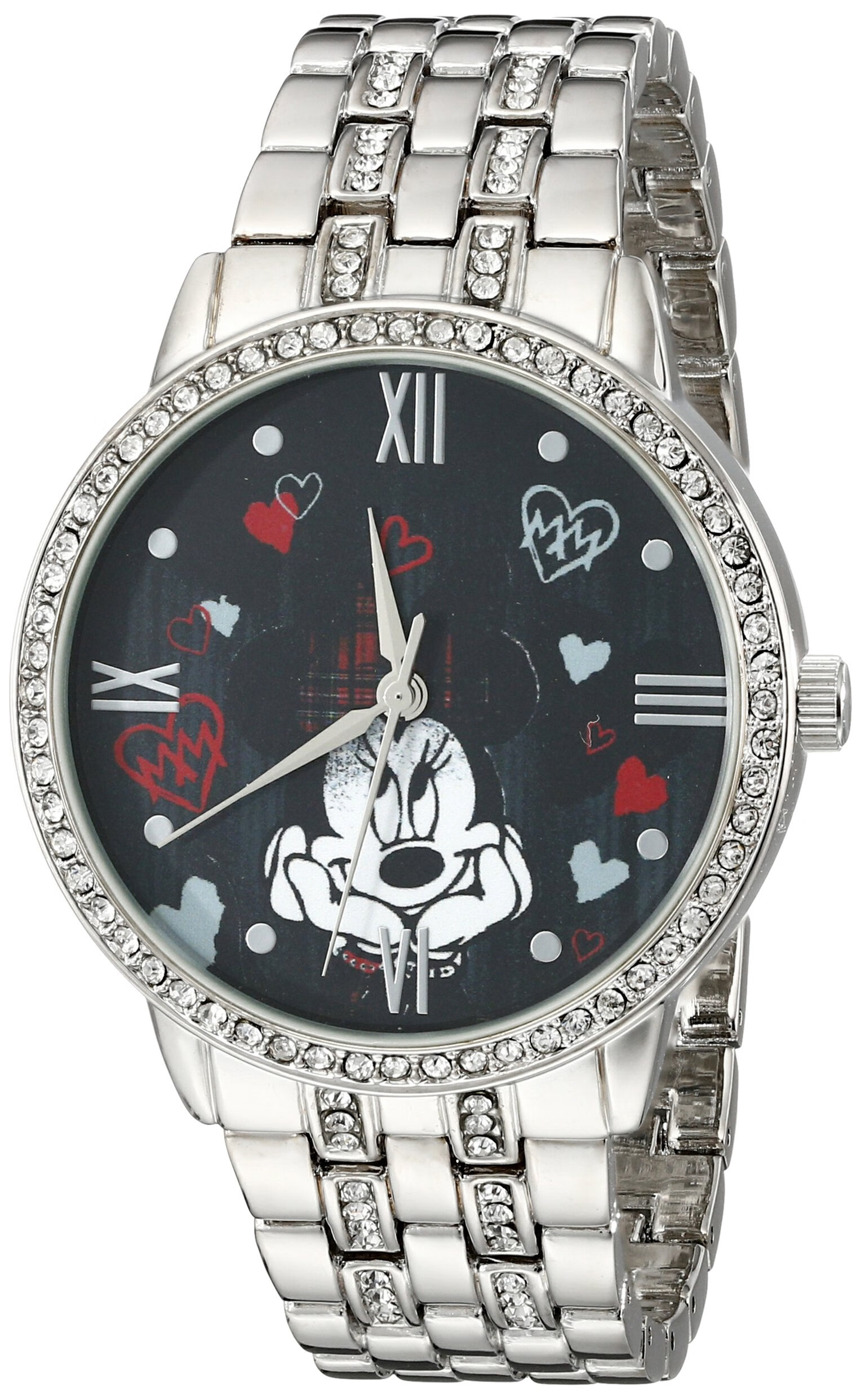 迪士尼disney Women's Minnie Mouse W001831 Analog Watch Blk, Silver 40.0 mm