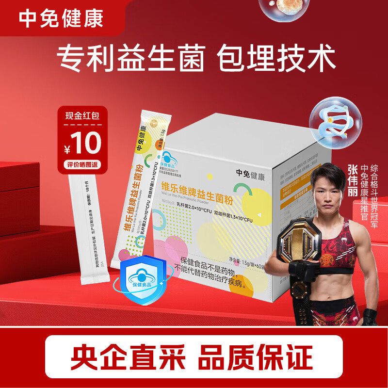 中免健康益生菌粉5000亿+CFU成人肠胃益生菌营养调理1.5g*60袋独立包装